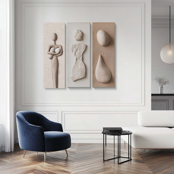 From modern 3D wall art for living rooms to 3D wall paintings for any home décor enthusiast, every piece is constructed from high-quality materials—polystyrene, HDHMR, wood, or WPC—with canvas fabric or wall accent bases with hand-painted finishes, etc. Our art elevates décor and atmosphere, providing as well a resonance of meaning, spiritual balance, and architectural rhythm in your environment.