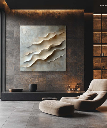 Handmade 3D painting with a modern abstract sculpture design. This textured wall decor and contemporary art panel adds depth and style to any space.