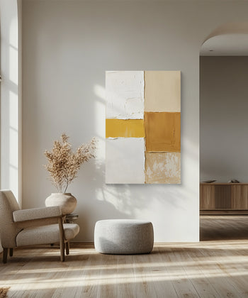 This collection is designed with delicate fabric, a natural tone palette, textured medium, high quality, hanging-quality canvas, acrylic finish, mixed media layering, and handcrafted quality that embrace longevity, sophistication, and a soulful masterpiece for your wall.