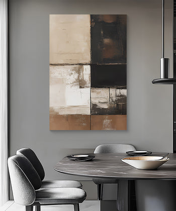 Earth: Neutral tones of beige and brown in Bohemian artwork promote grounding energy.