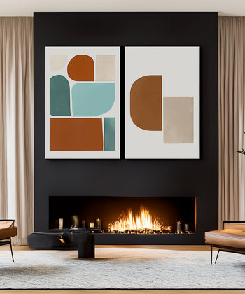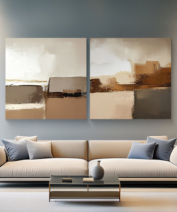 2-Panel Urban Block Abstract Duo in Warm Neutrals