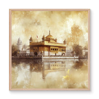 An yet realistic depiction of the Golden Temple reflecting in serene waters. The contrast of warm golden tones against soft grays makes it a stunning ethnic wall art for modern...