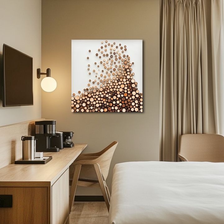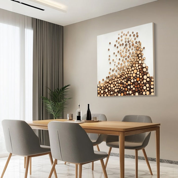 Add warmth with a handmade wood art piece. This natural wood circle painting blends contemporary 3D wall decor with luxury wooden home decor for a unique touch.