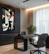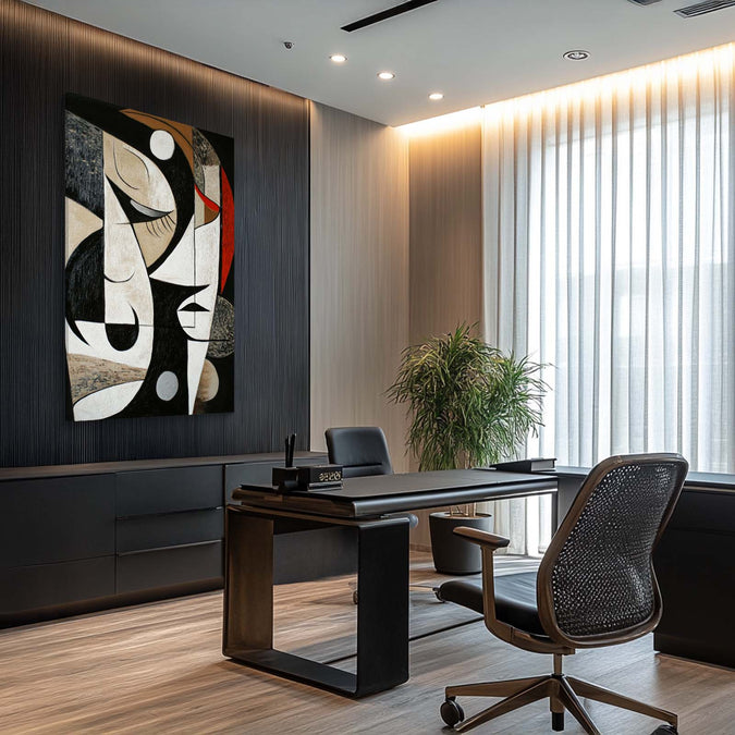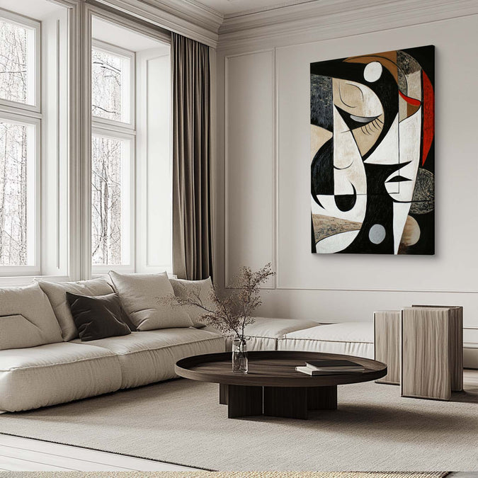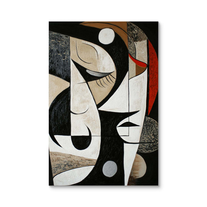Enhance your bedroom with this abstract faces and geometric shapes painting. A bold abstract artwork that brings modern style, texture, and depth to your space.