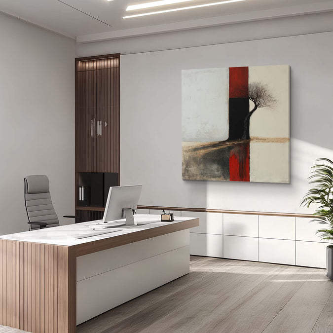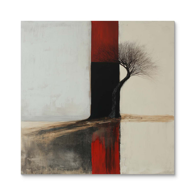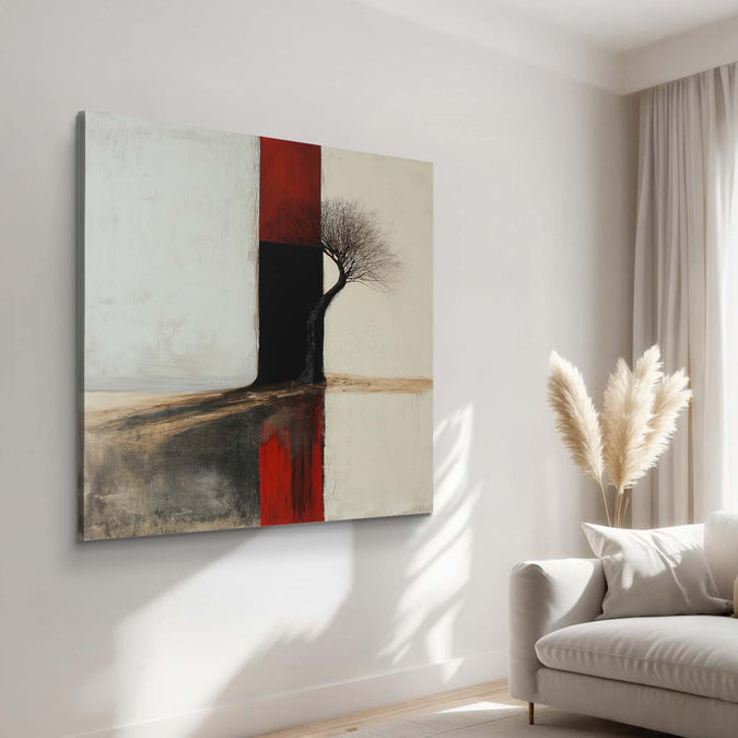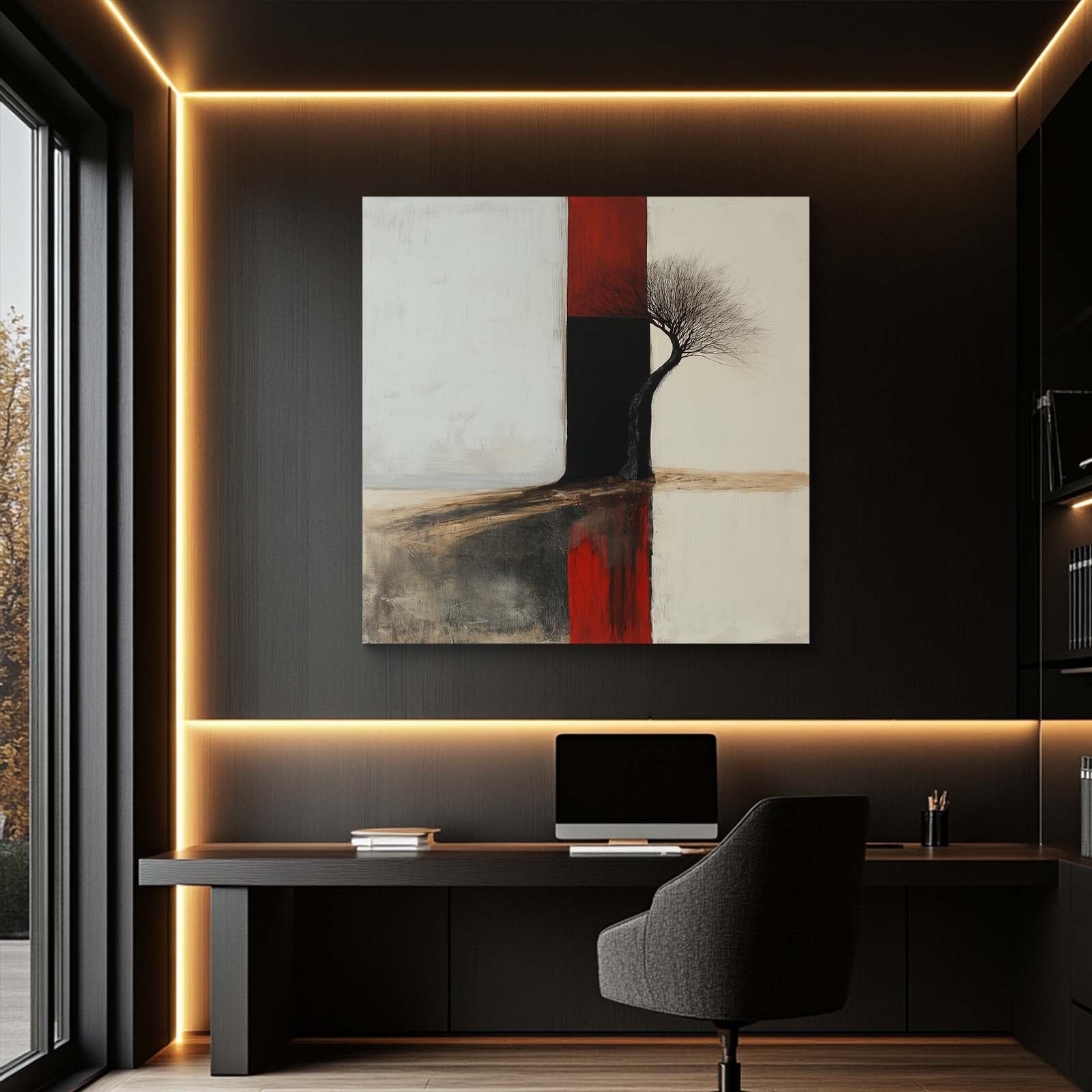 Enhance your decor with this abstract tree painting featuring bold red accents. A striking abstract nature painting perfect for modern, minimal, or artistic interiors.