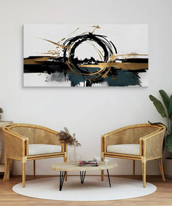 This handmade painting features a stunning combination of gold, orange, grey, blue, and black colors, creating a visually striking and dynamic composition. The abstract minimalist style of the painting adds a sense of modernity and sophistication, with subtle textures and layers adding depth and complexity to the piece. The use of bold colors and abstract shapes creates a sense of movement and energy, drawing the viewer in and inviting them to explore the intricacies of the painting. Overall, this abstract painting is a beautiful and unique addition to any art collection, sure to spark conversation and admiration from all who see it.