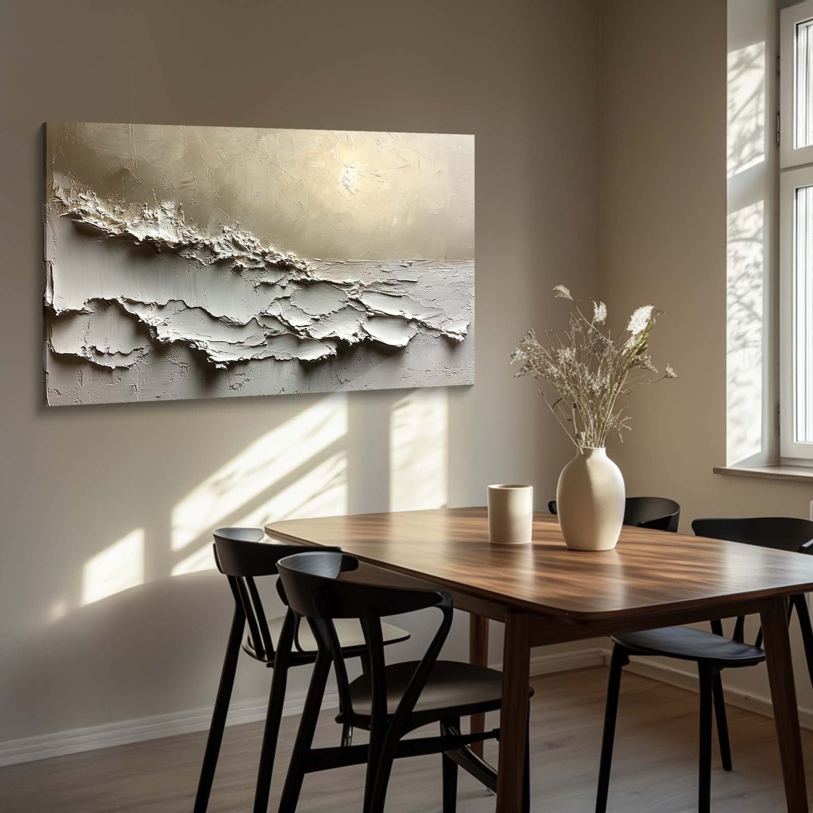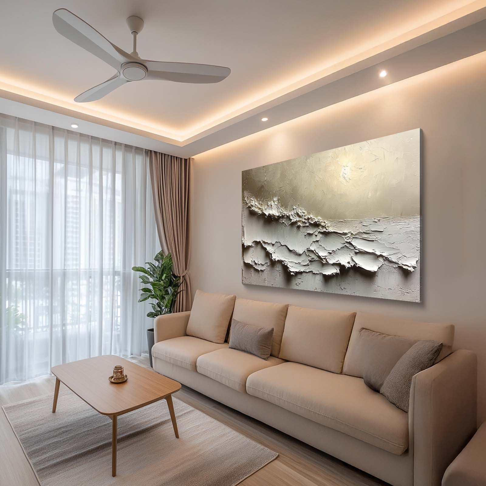 Calming beige and white abstract textures creating a serene and minimalist ambiance.