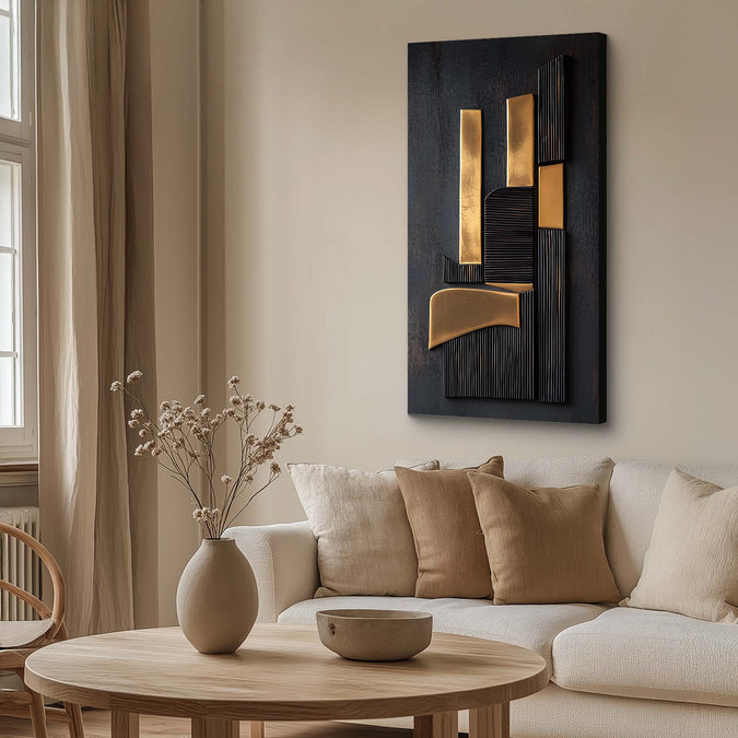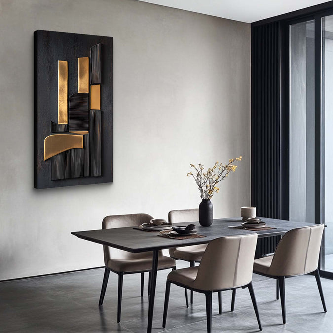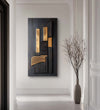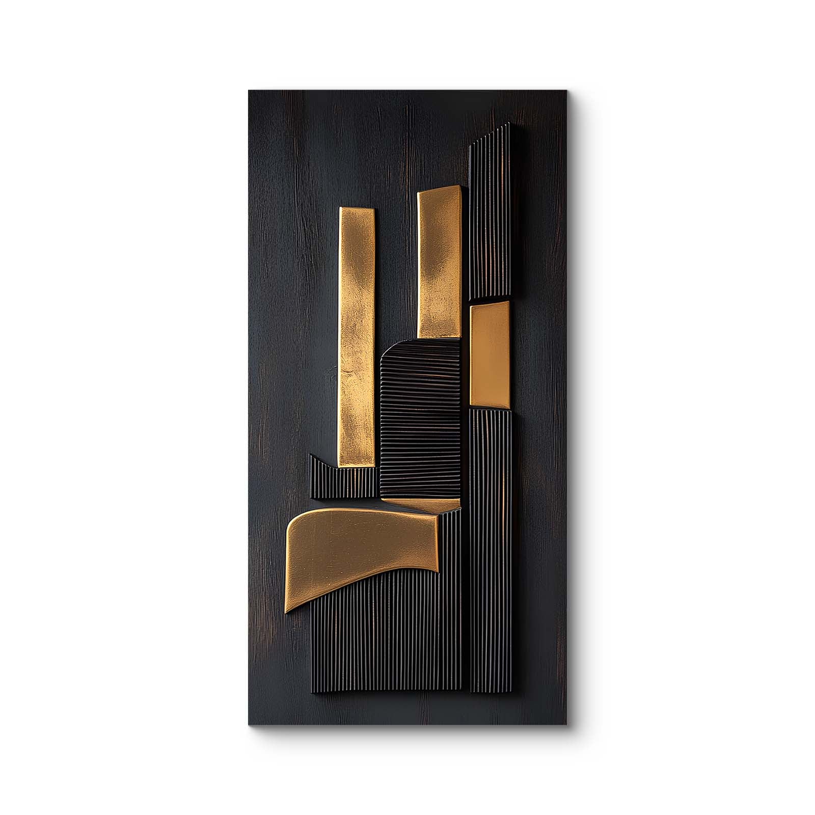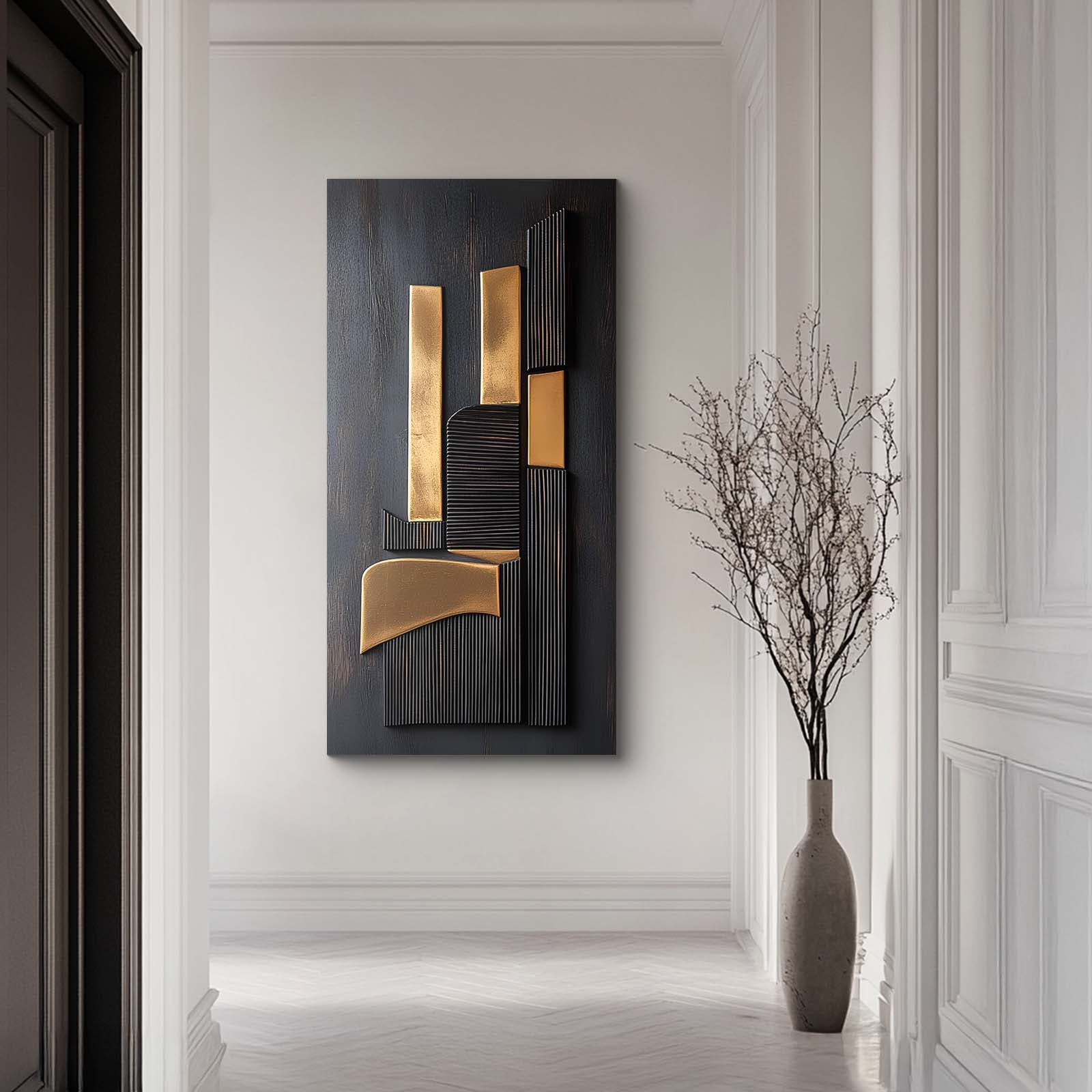 This contemporary black and gold 3D art is designed with a structured pattern, offering a luxurious touch to any space.