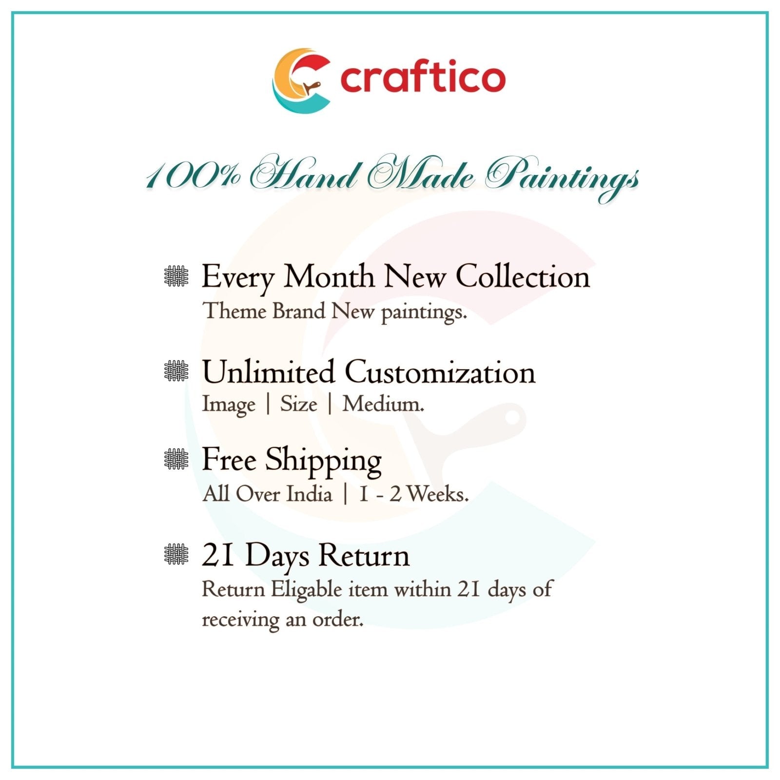 Painting: These are made using acrylic colors and texture on pure 320/250 GSM cotton canvas.