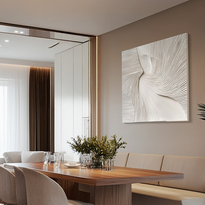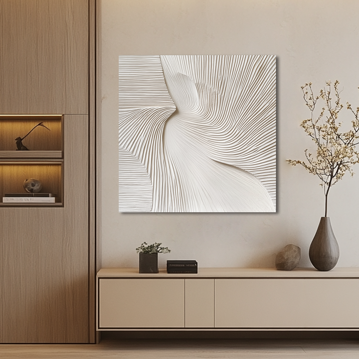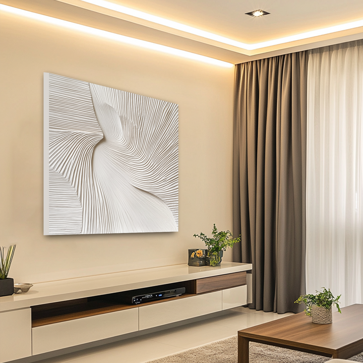 This handmade 3D wall decor features intricate fluid textures that mimic natural forms like wind-swept sand or ocean currents. The detailed sculpting enhances light and shadow interaction, making it a stunning modern wall art piece for luxury homes, offices, and galleries.