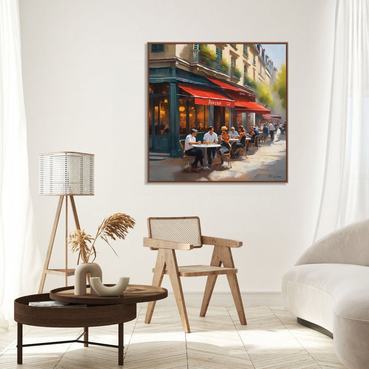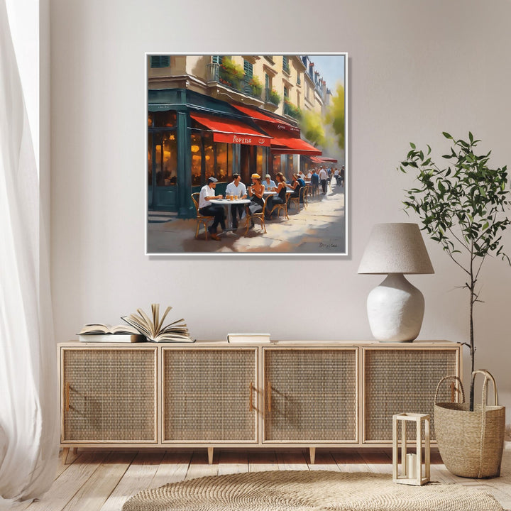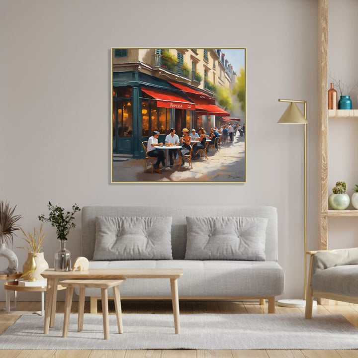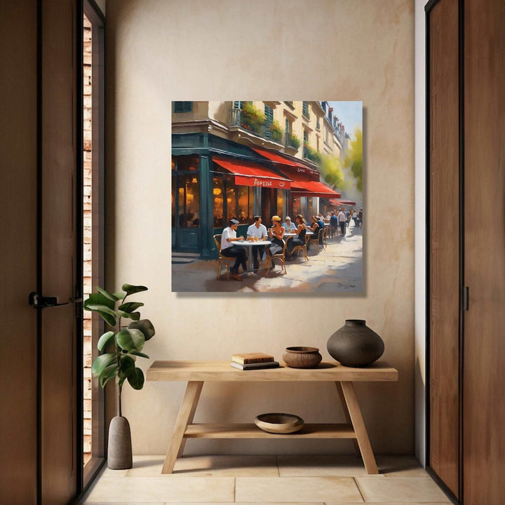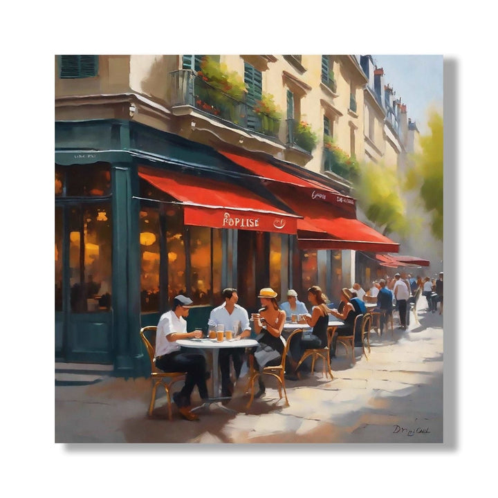 'Glimpses of Urban Delight' captures the vibrant atmosphere of a city street, showcasing a charming restaurant and the lively people passing by. The artist skill fully portrays the energy and diversity of urban life, inviting viewers to immerse themselves in the captivating scene.