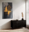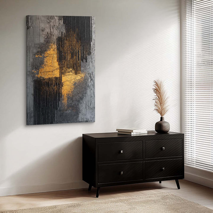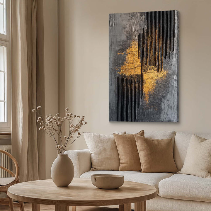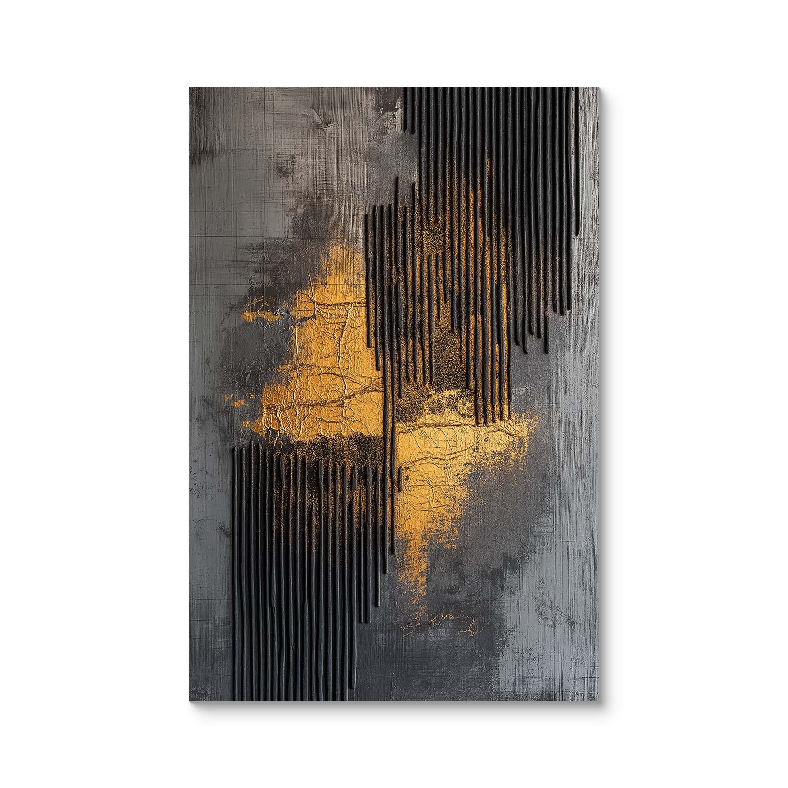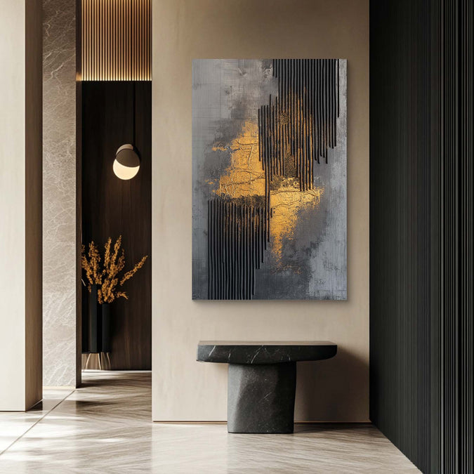 Elegant linear patterns in gold and black that blend abstract textures for a sophisticated effect.