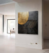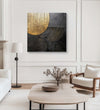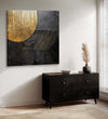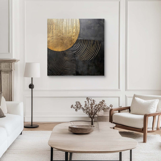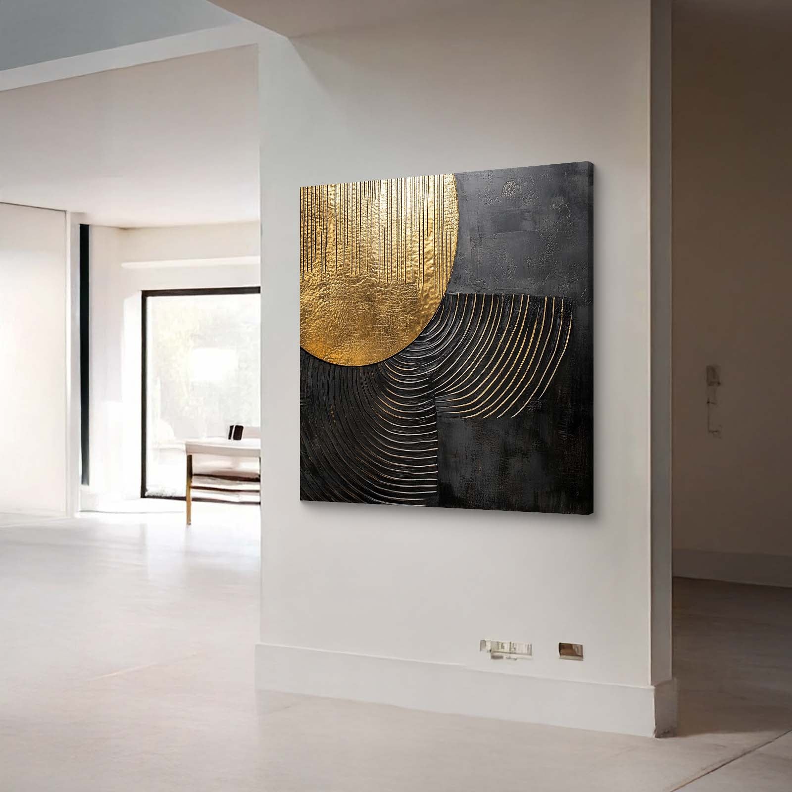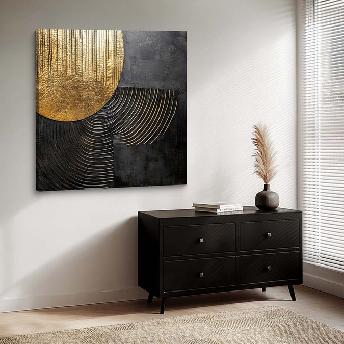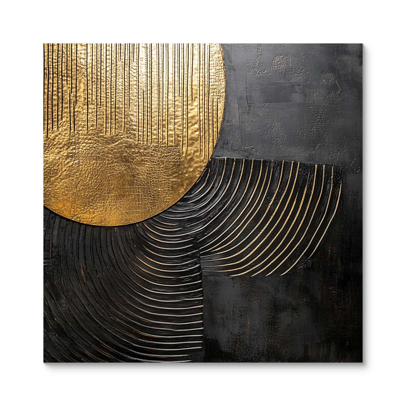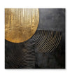 Luxurious golden circular textures juxtaposed against a black textured background for striking contrast.