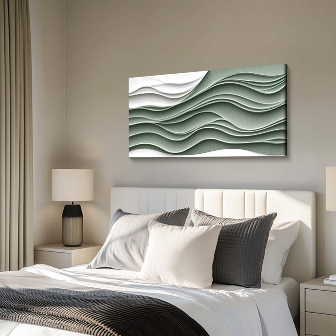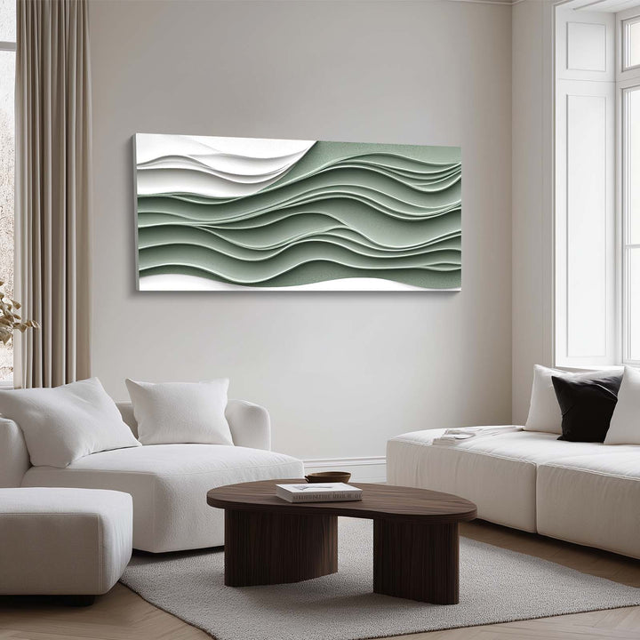 Green and White Layered Wave Art