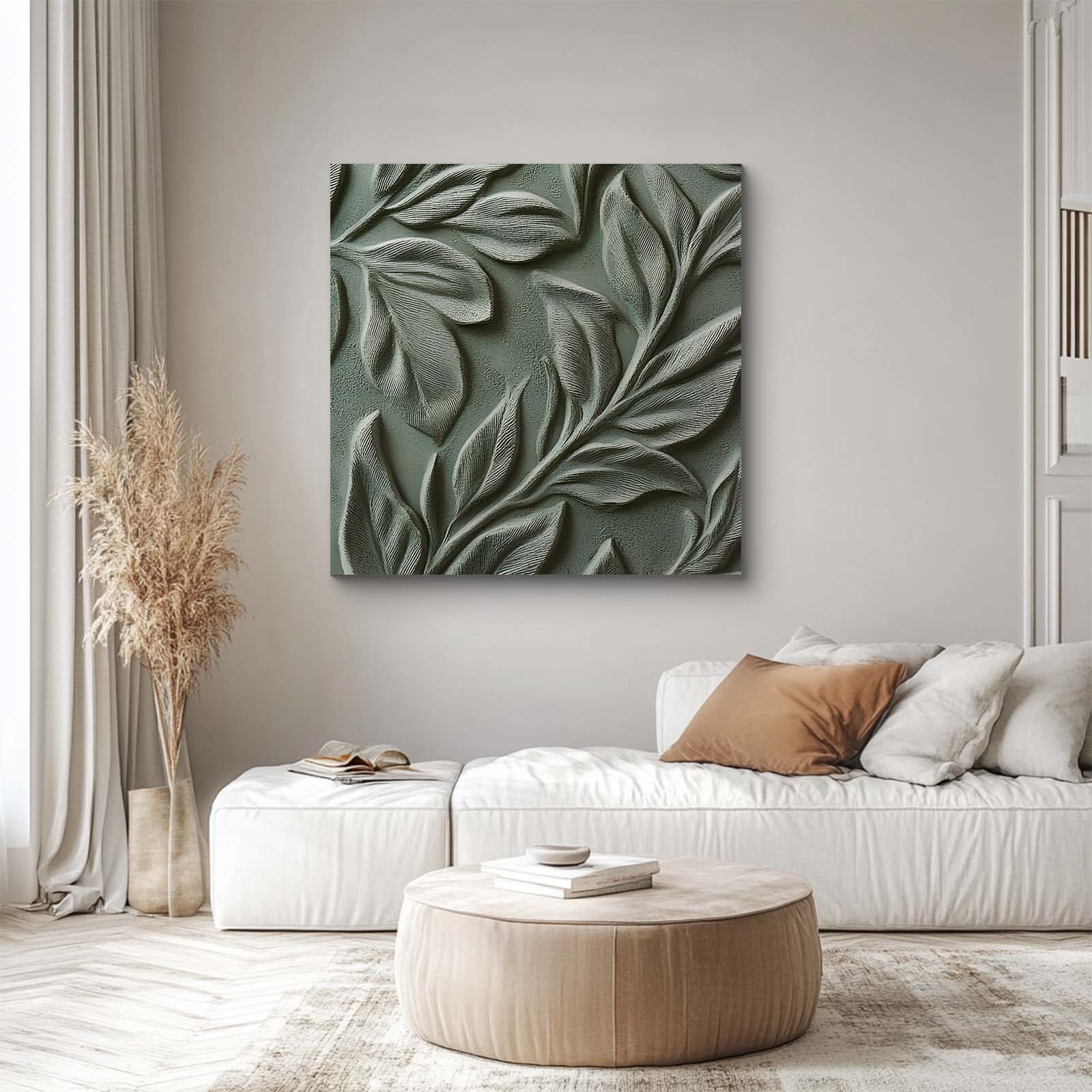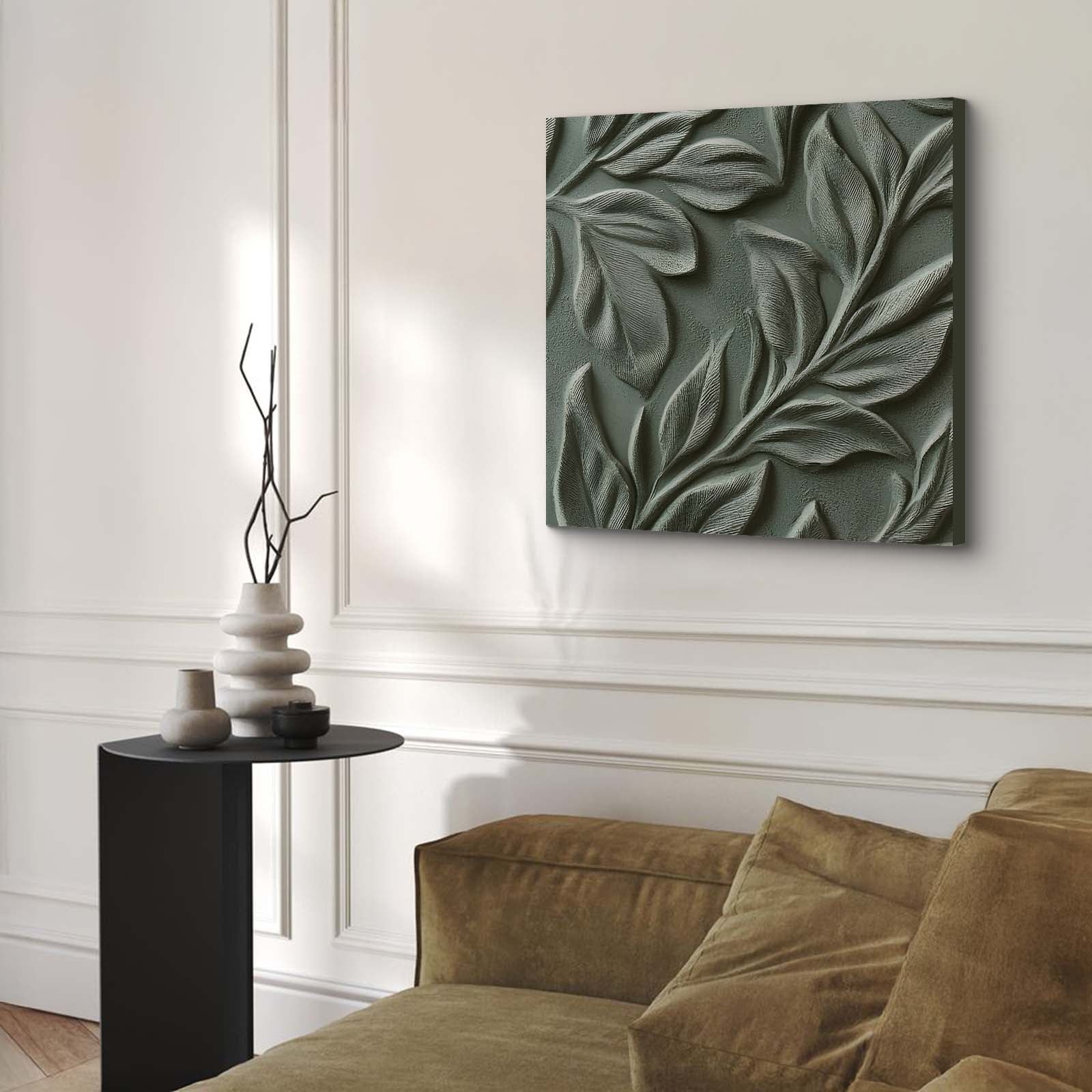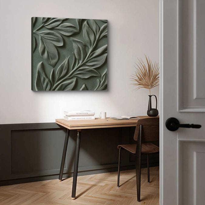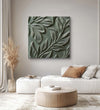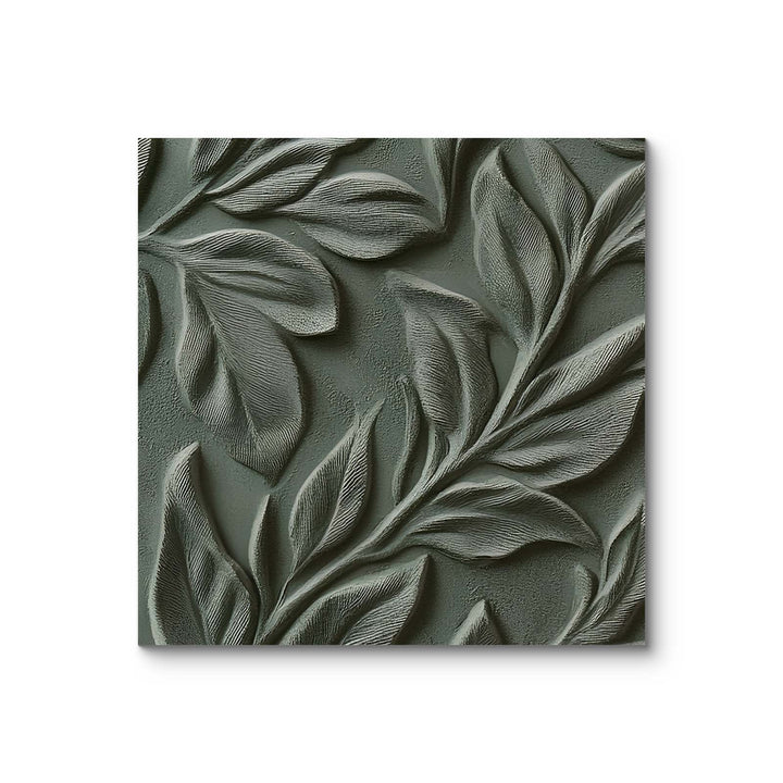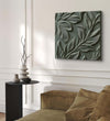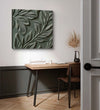 The botanical artpiece emerges from the wall as embossed foliage — a generous and understated homage to renewal and the quiet unfolding of life. The green is a gesture of hope, while the structure is resolute — together they imply beauty emerges from structure and care. Installing this piece is both an invitation for vitality to inhabit a space and a recognition that your personal terrain, too, deserves tending.