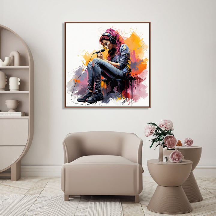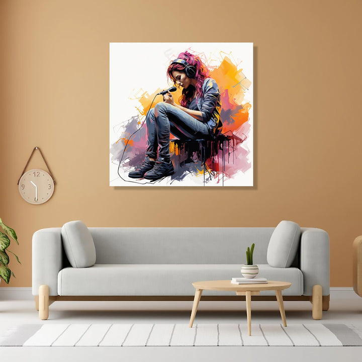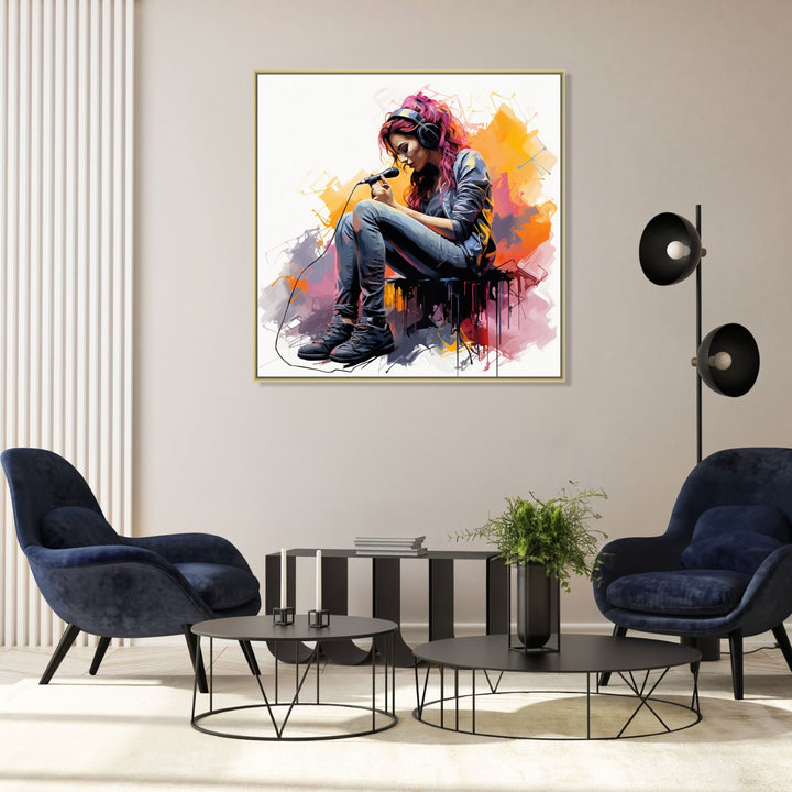 'Melodies of Joy' depicts a young girl singing with pure delight, her voice filling the air with a sense of joy and happiness. The vibrant colours and lively brushstrokes capture the energy and passion of her performance, creating a captivating and uplifting scene.