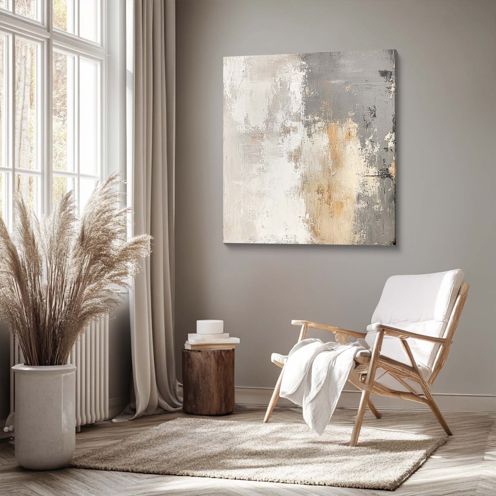 Minimalist abstract art employing earthy tones with gentle textures, perfect for creating a calming ambiance.