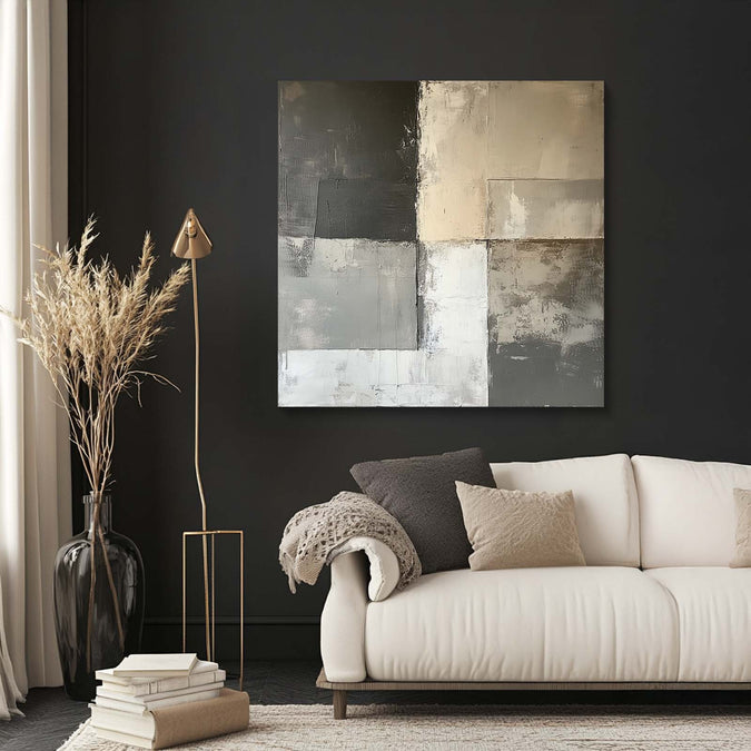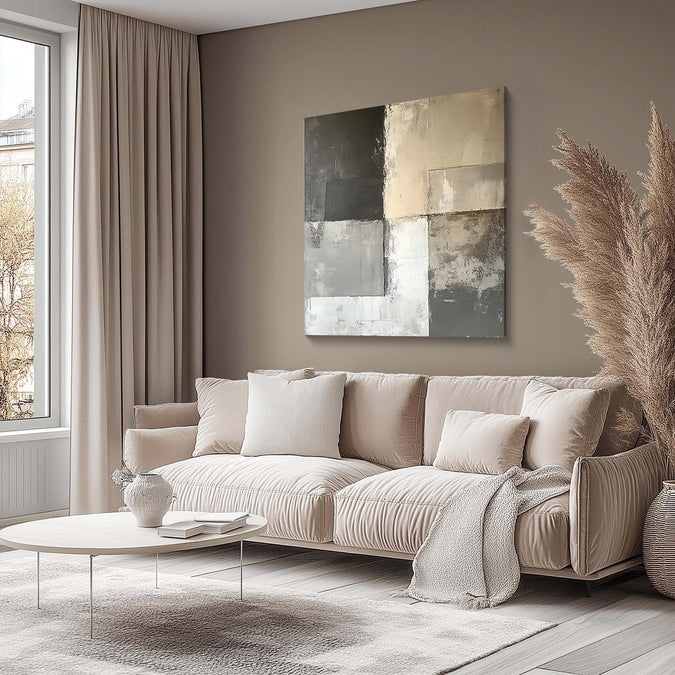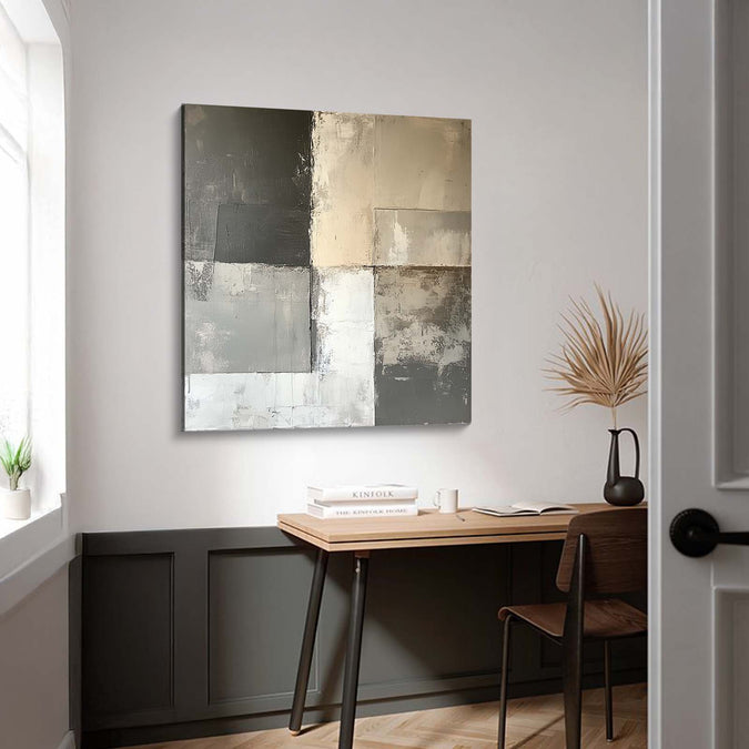 Composed of neutral-colored textured blocks, this painting brings subtle elegance and modernity to any interior.
