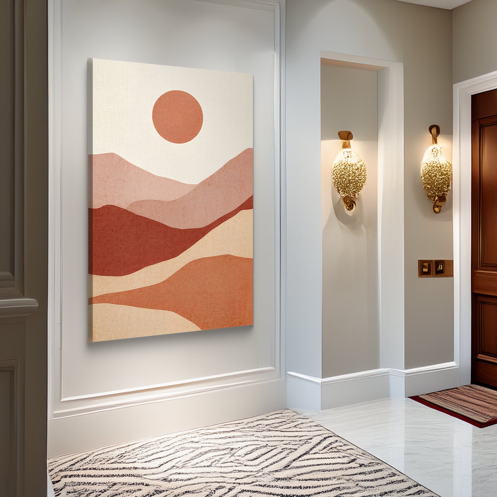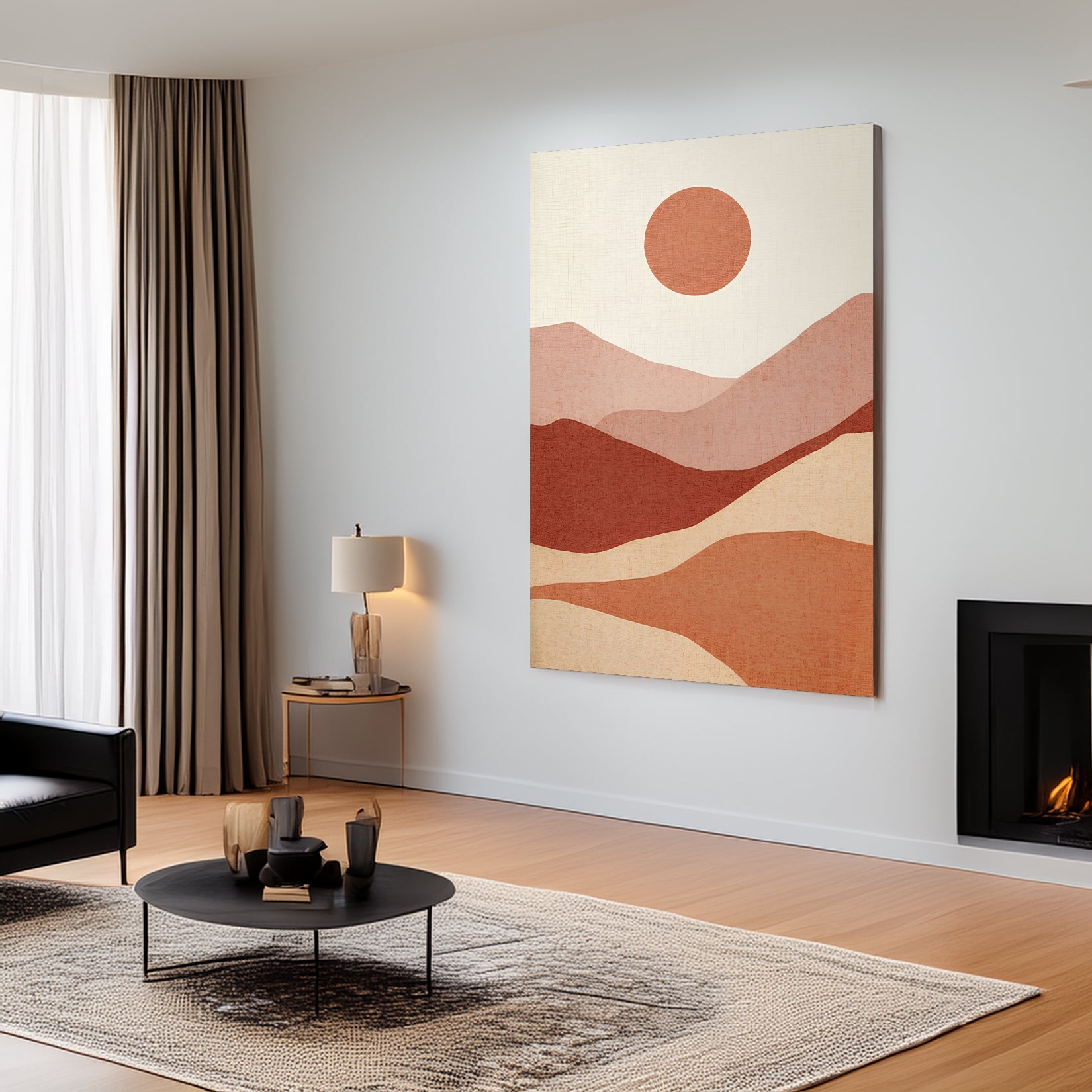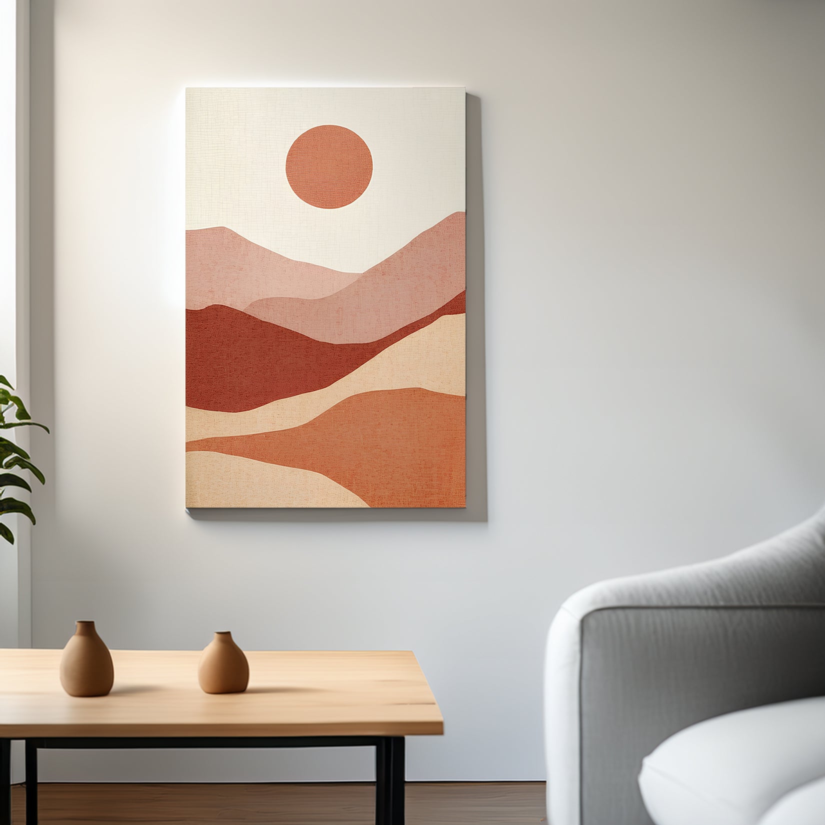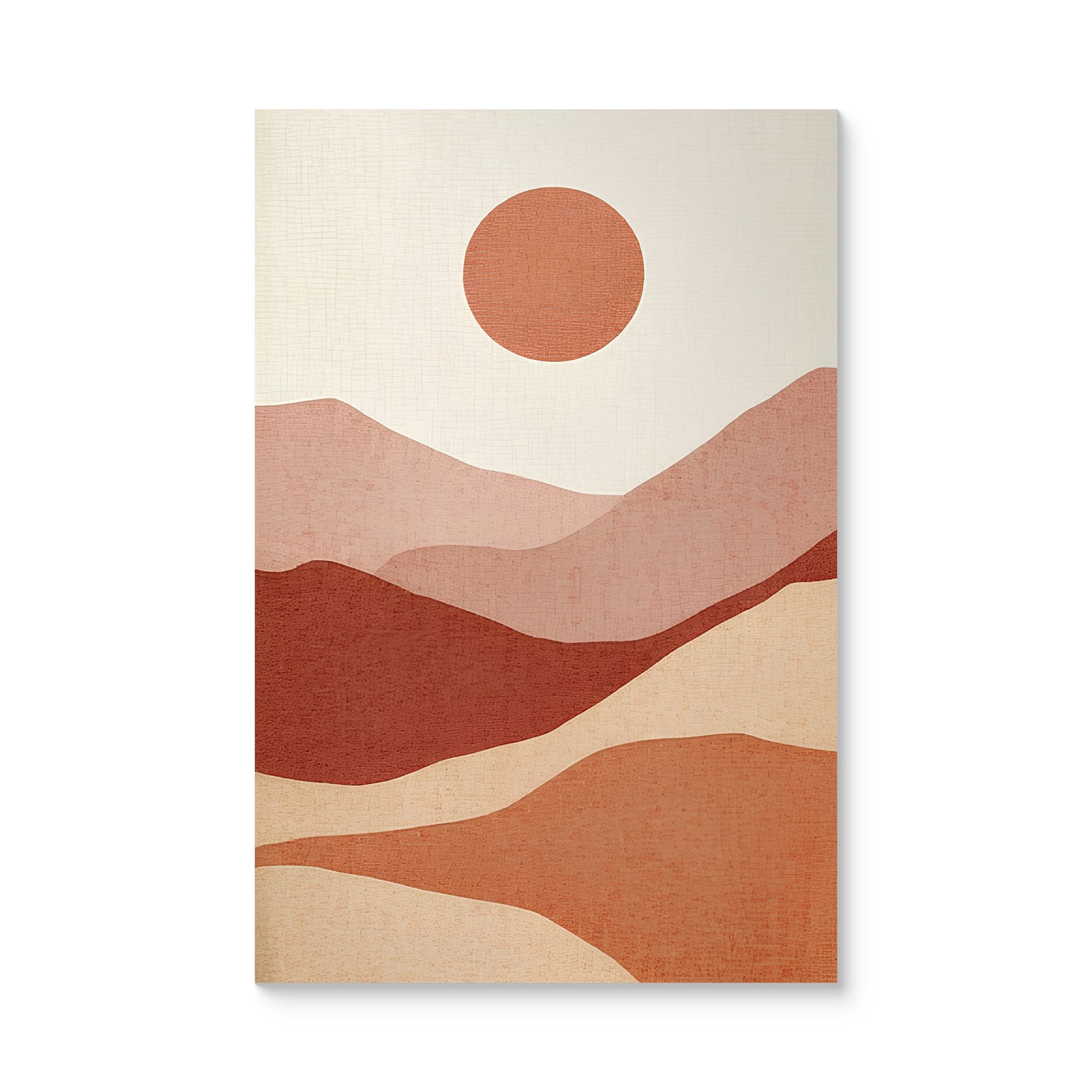 A soothing abstract of terracotta hills under a warm sun, evoking desert landscapes and perfect for cozy boho home decor.