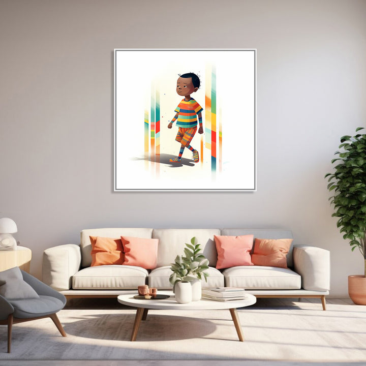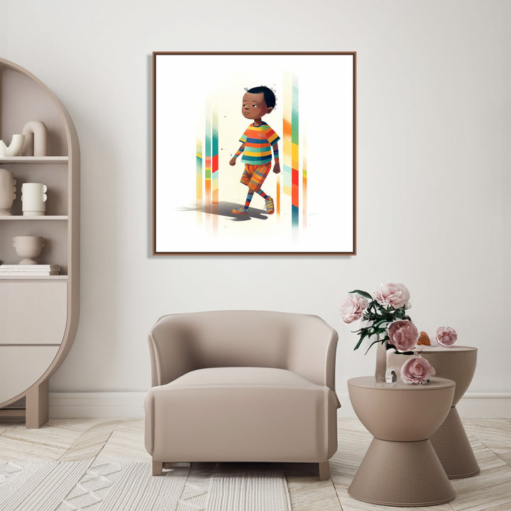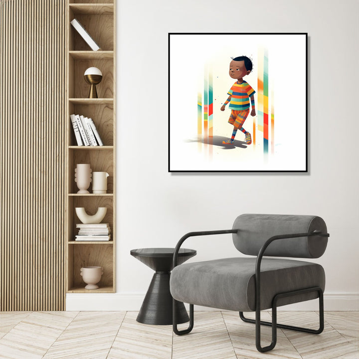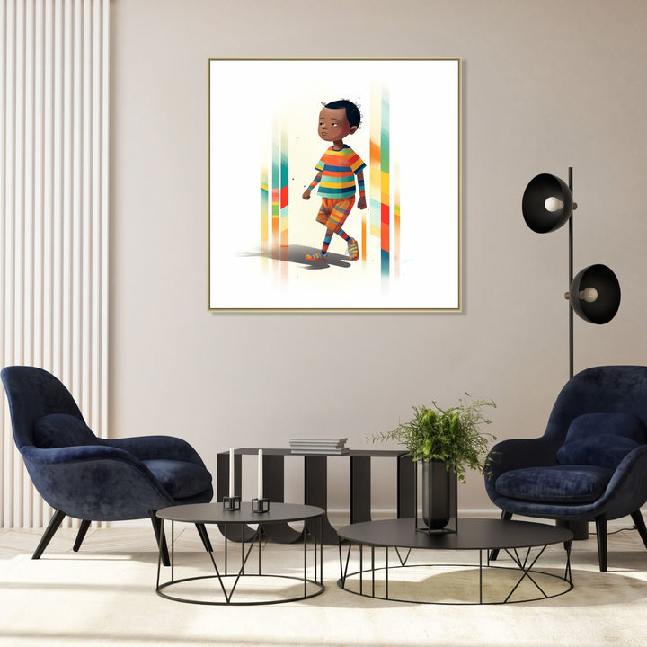 'Vibrant Innocence' captures the essence of a small African boy wearing a colourful dress, radiating with innocence and joy. The vibrant colours of his attire symbolise the richness and diversity of his culture, while his youthful spirit shines through his expressive eyes.