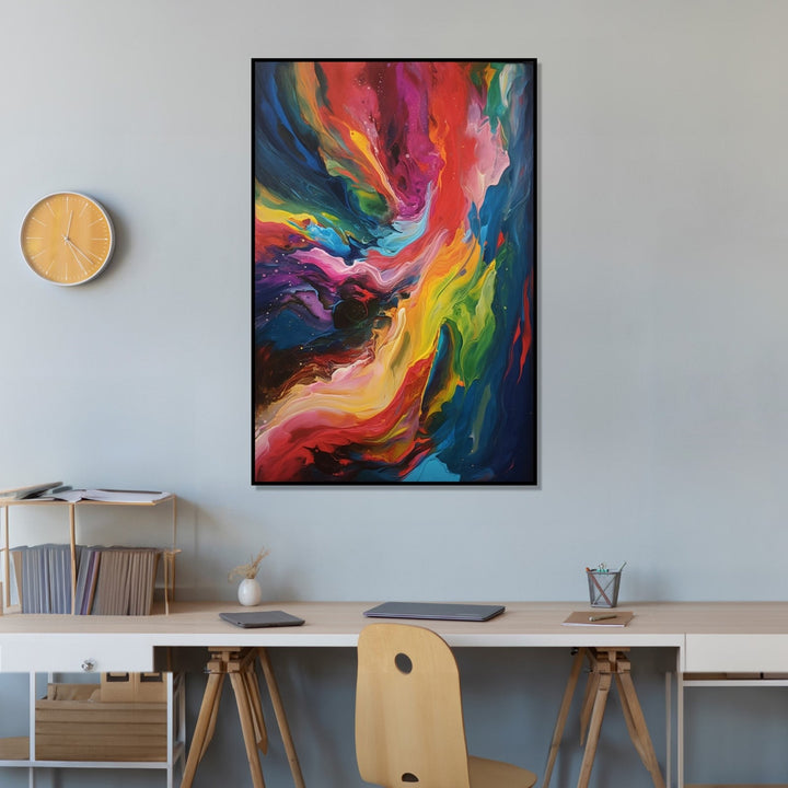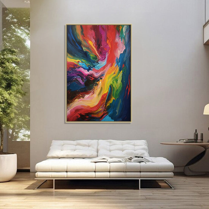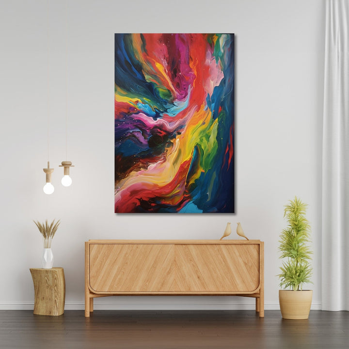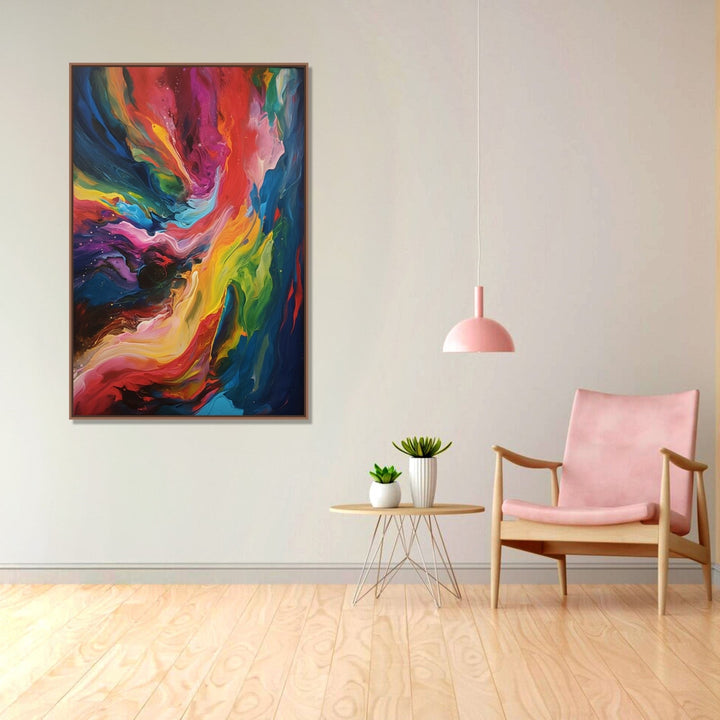 In 'Vivid Chaos' a mesmerising array of colourful random yarns floating in a brilliant cacophony of hues, celebrating the vivacious and unstructured beauty of the artistic realm.