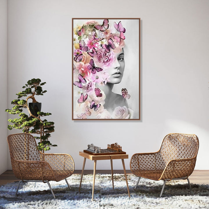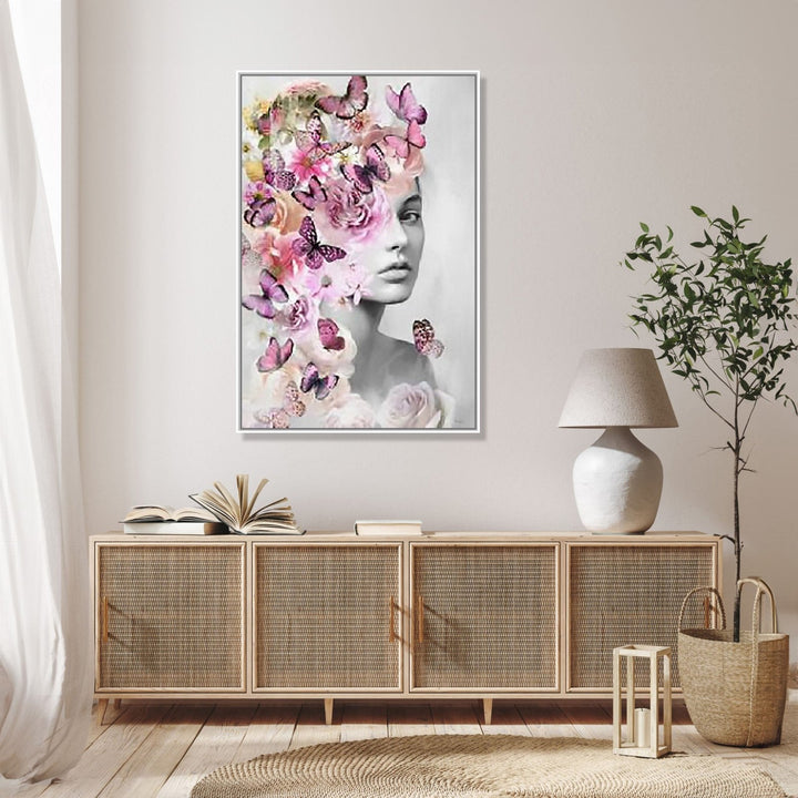 'Whimsical Beauty' captures the essence of whimsy and harmony through a grey face adorned with delicate pink butterflies. The juxtaposition of the serene grey tones and the vibrant butterflies creates a captivating visual experience that evokes a sense of tranquillity and enchantment.